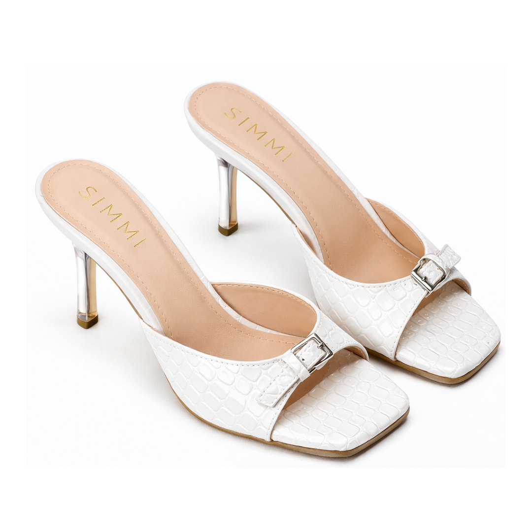 A refined croc-embossed heeled mule designed for women who move with composure.