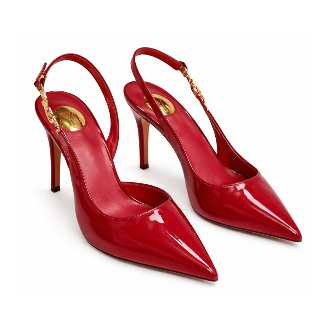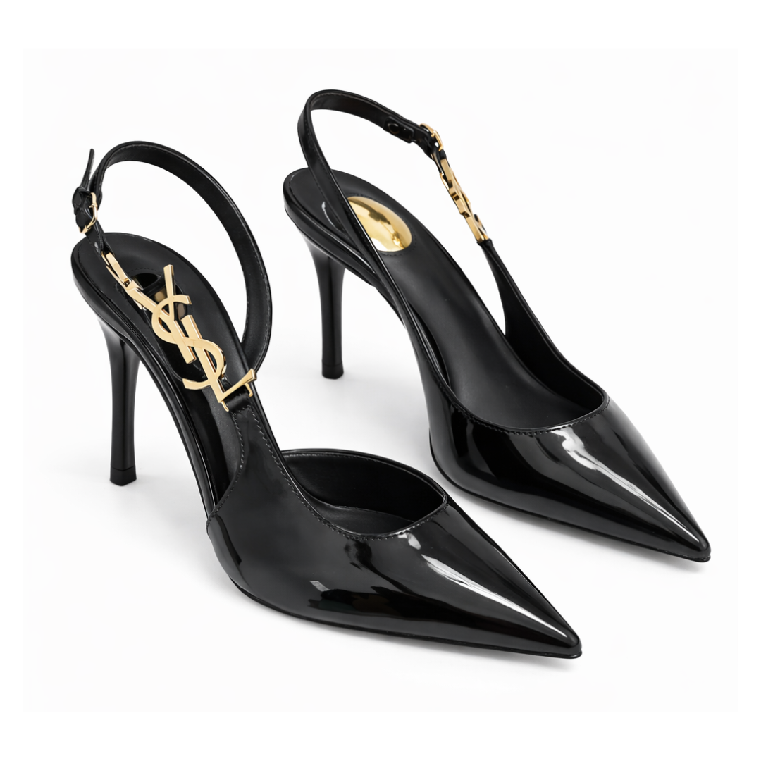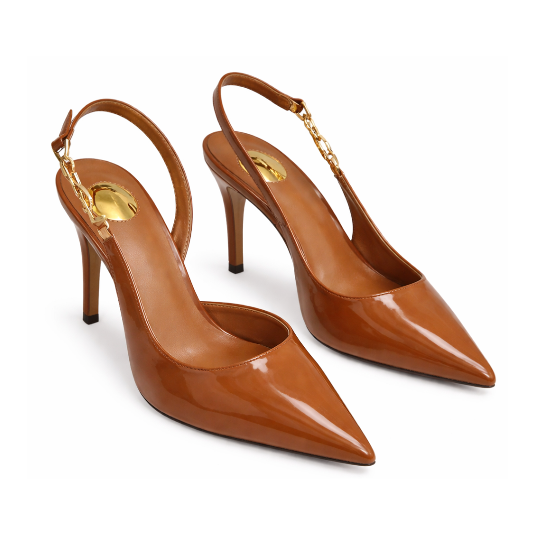 Commanding heels defined by polished structure and restrained gold detailing.